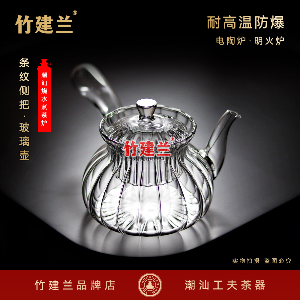 竹建兰耐高温上链灯空气灯高硼硅条纹玻璃壶香蕉侧把壶煮茶炉茶具 - 竹建兰灯炉