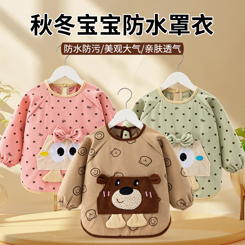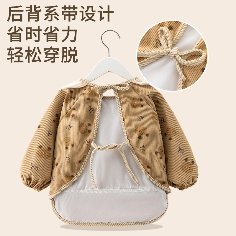宝宝灯芯绒可爱防水反穿衣儿童吃饭防水防脏围兜小童洋气外穿罩衣 - 木木儿童用品