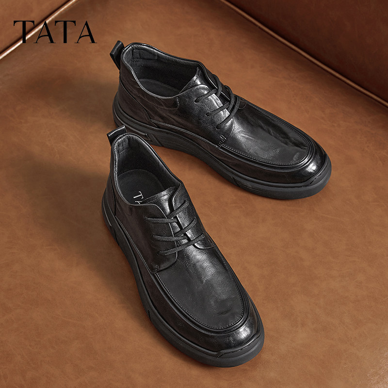 Tata他她商务休闲皮鞋高帮鞋男士软底真皮加绒鞋2025冬新QFJ02DM4 - TATA他她男鞋旗舰店