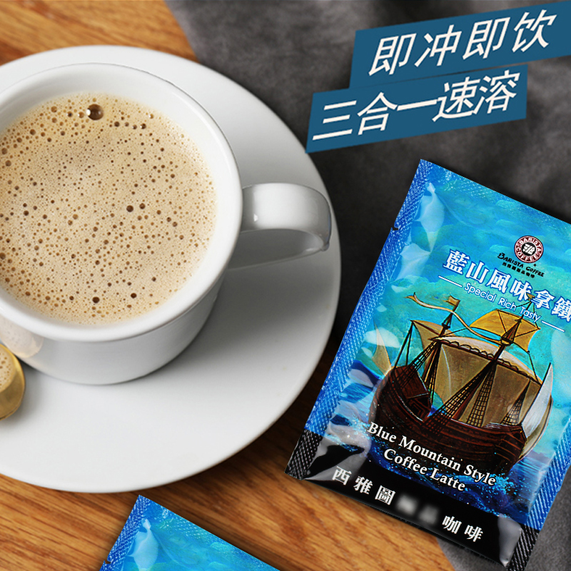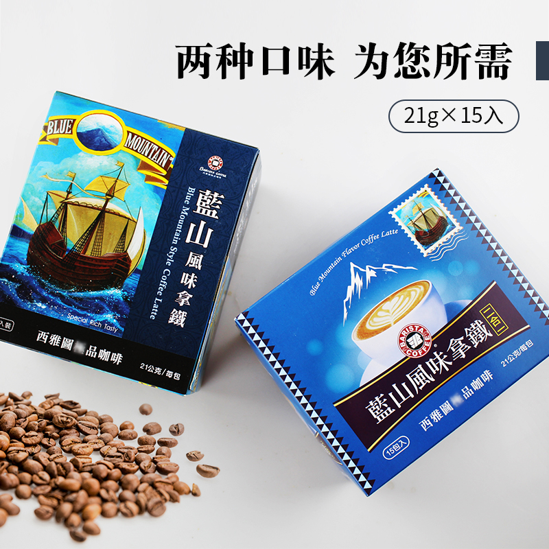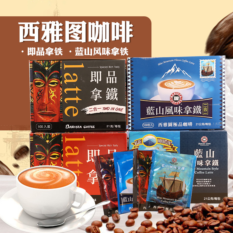 台湾西雅图咖啡蓝山风味拿铁咖啡三合一盒装二合一提神速溶咖啡粉