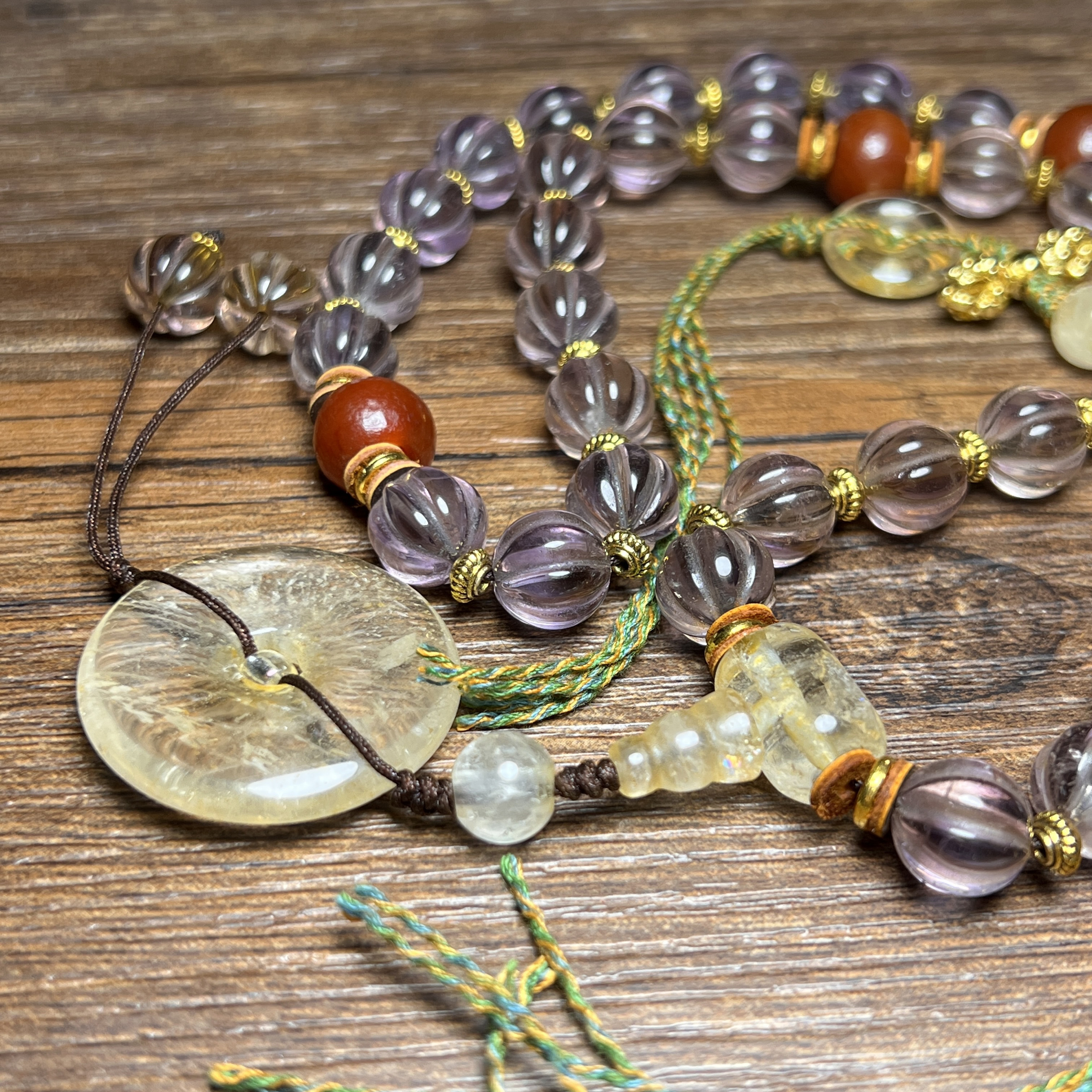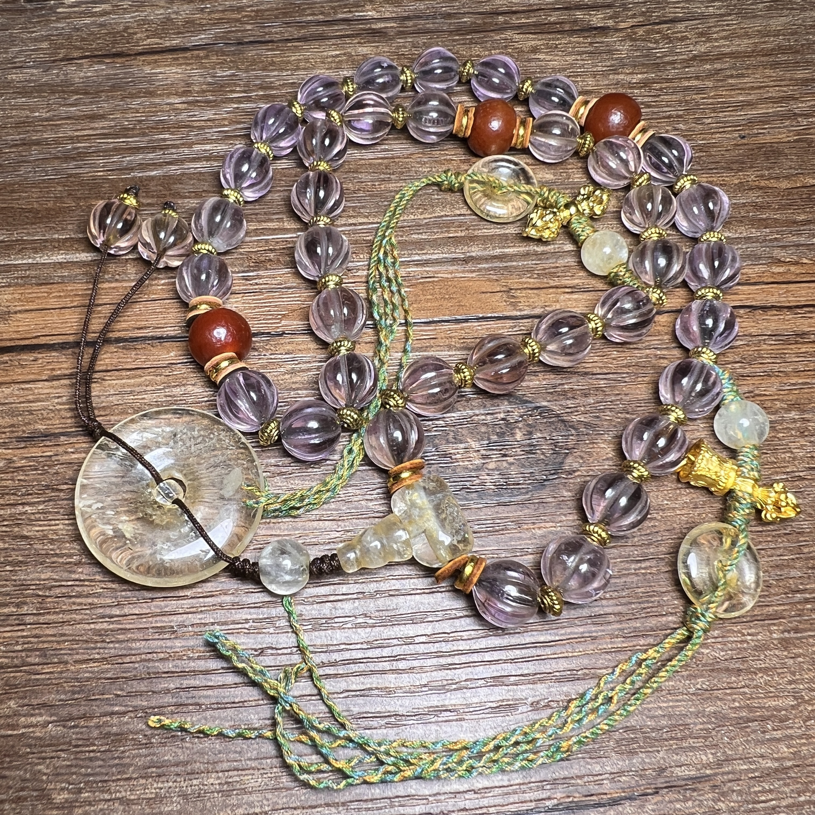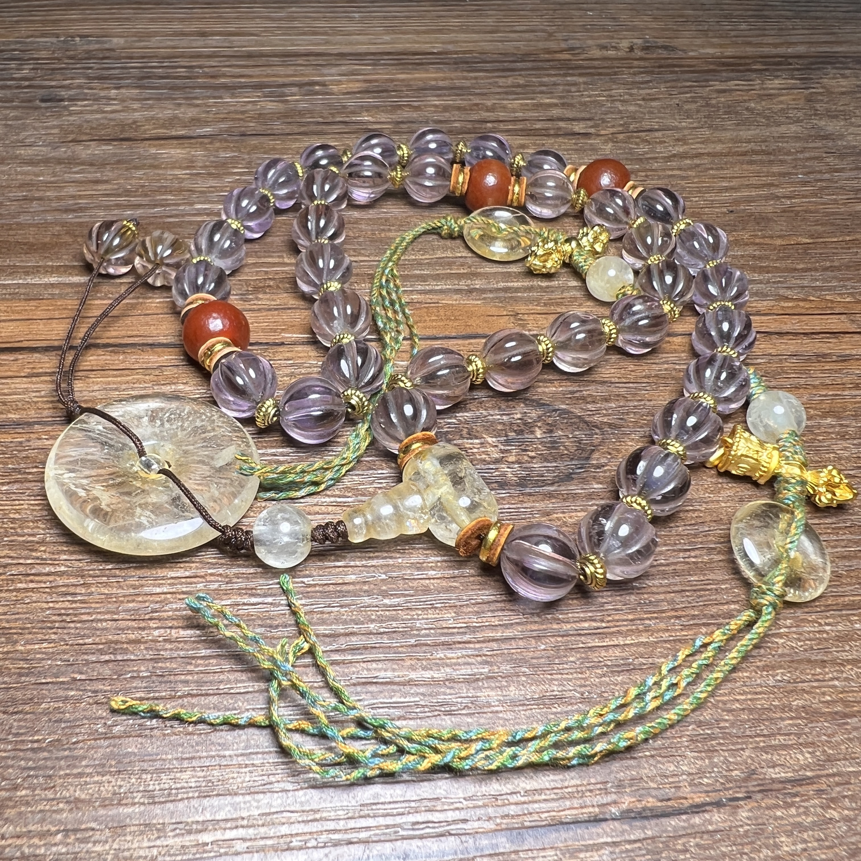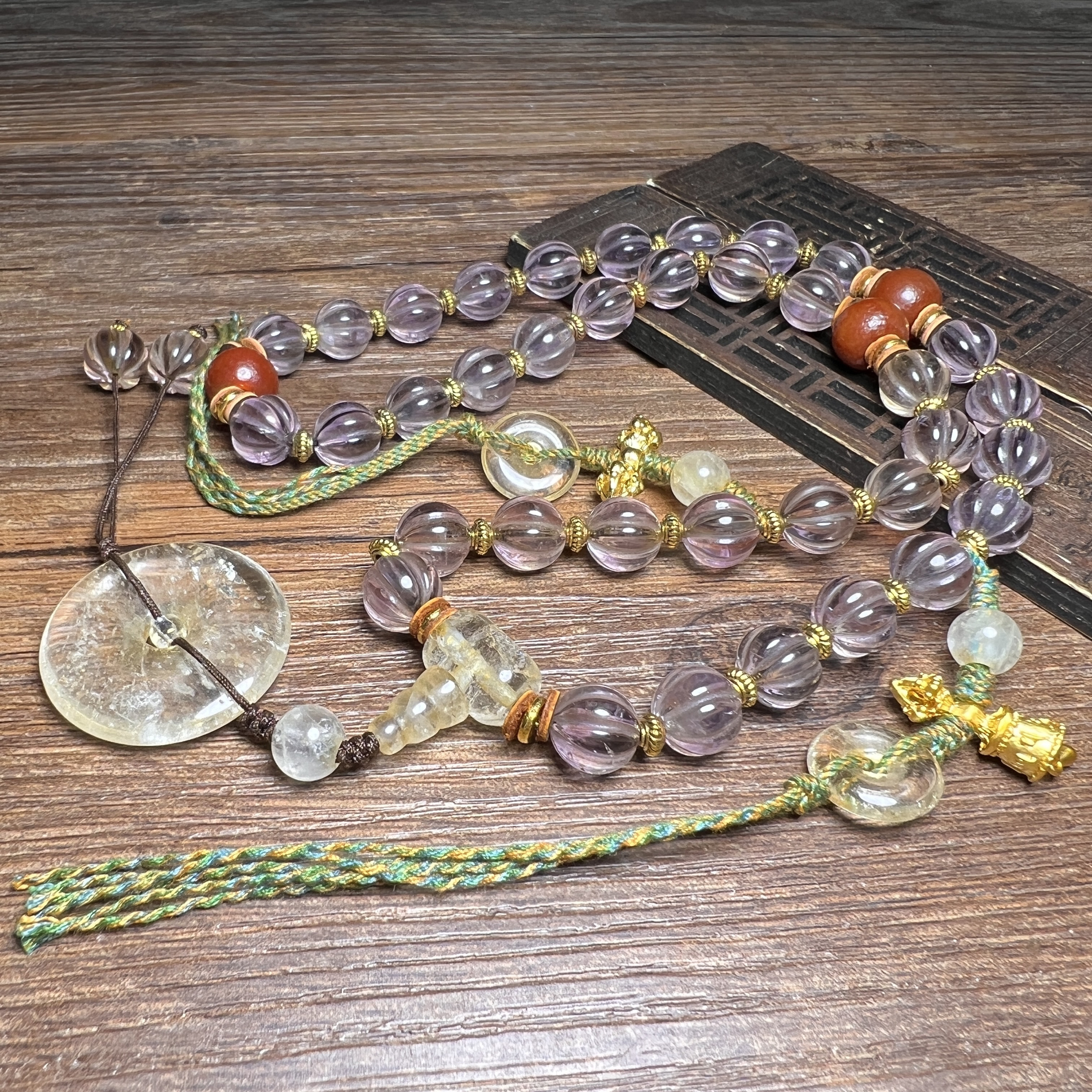 您的位置:他他商城  >   >  古玩杂项天然透明紫水晶石瓜珠扭纹西藏项链文玩手串佛珠老珠手持