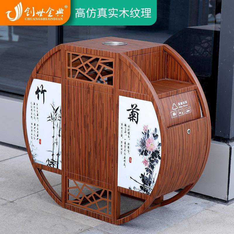 您的位置:他他商城  >   >  仿木纹户外分类垃圾桶大号公园中国风双桶室外果皮箱庭院中式景区