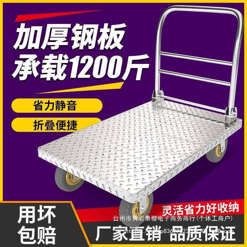 顺和轻便小推车拉货折叠静音手推车平板车搬运车钢板物流大号拖车 - 禾森百货商行2