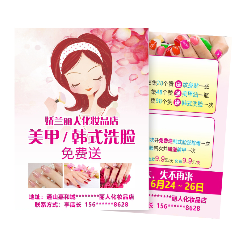 您的位置:他他商城  >   >  美容美甲美睫纹绣店开业活动广告宣传单免费设计彩页单页制作印制