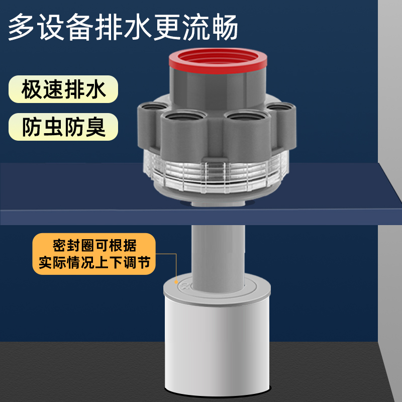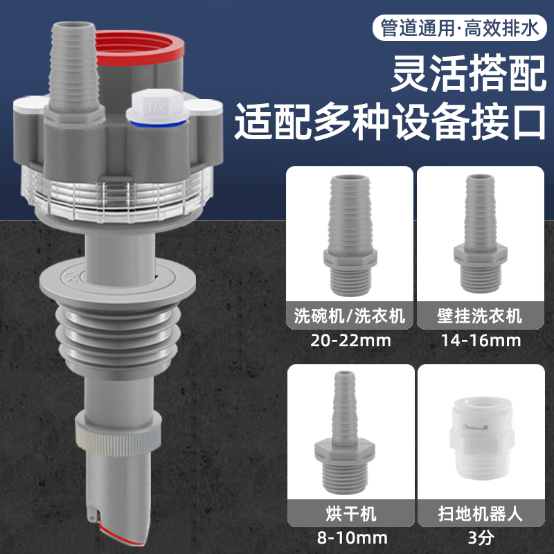 洗衣机下水三通断层接头加长加高延长管烘干机扫地机排水四通防臭 - 法瑜旗舰店