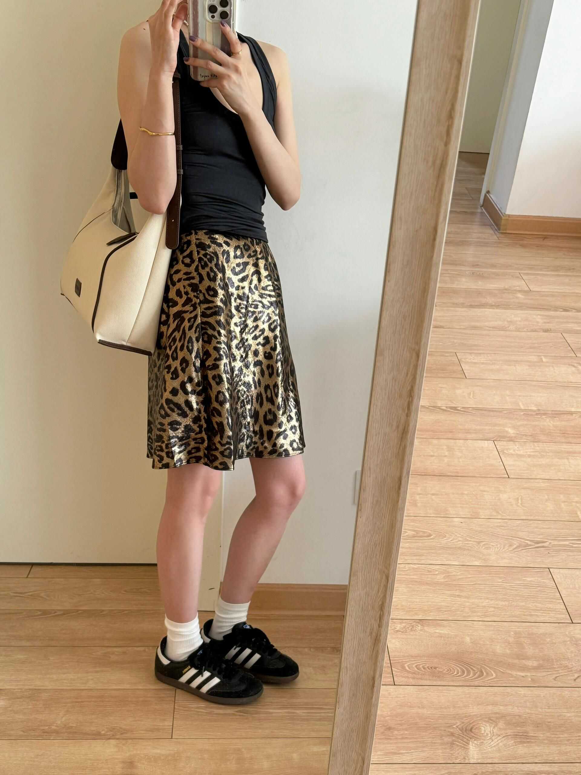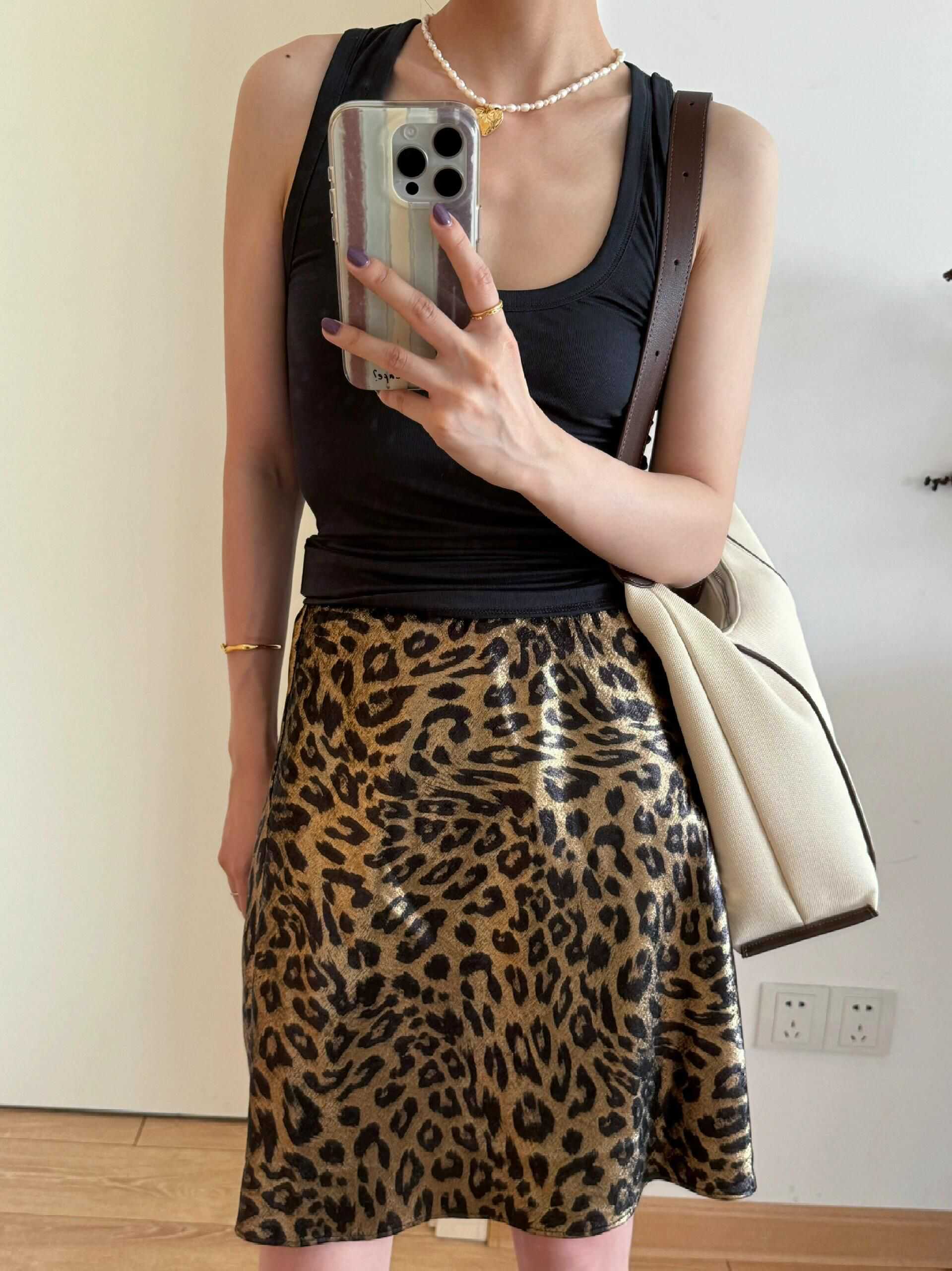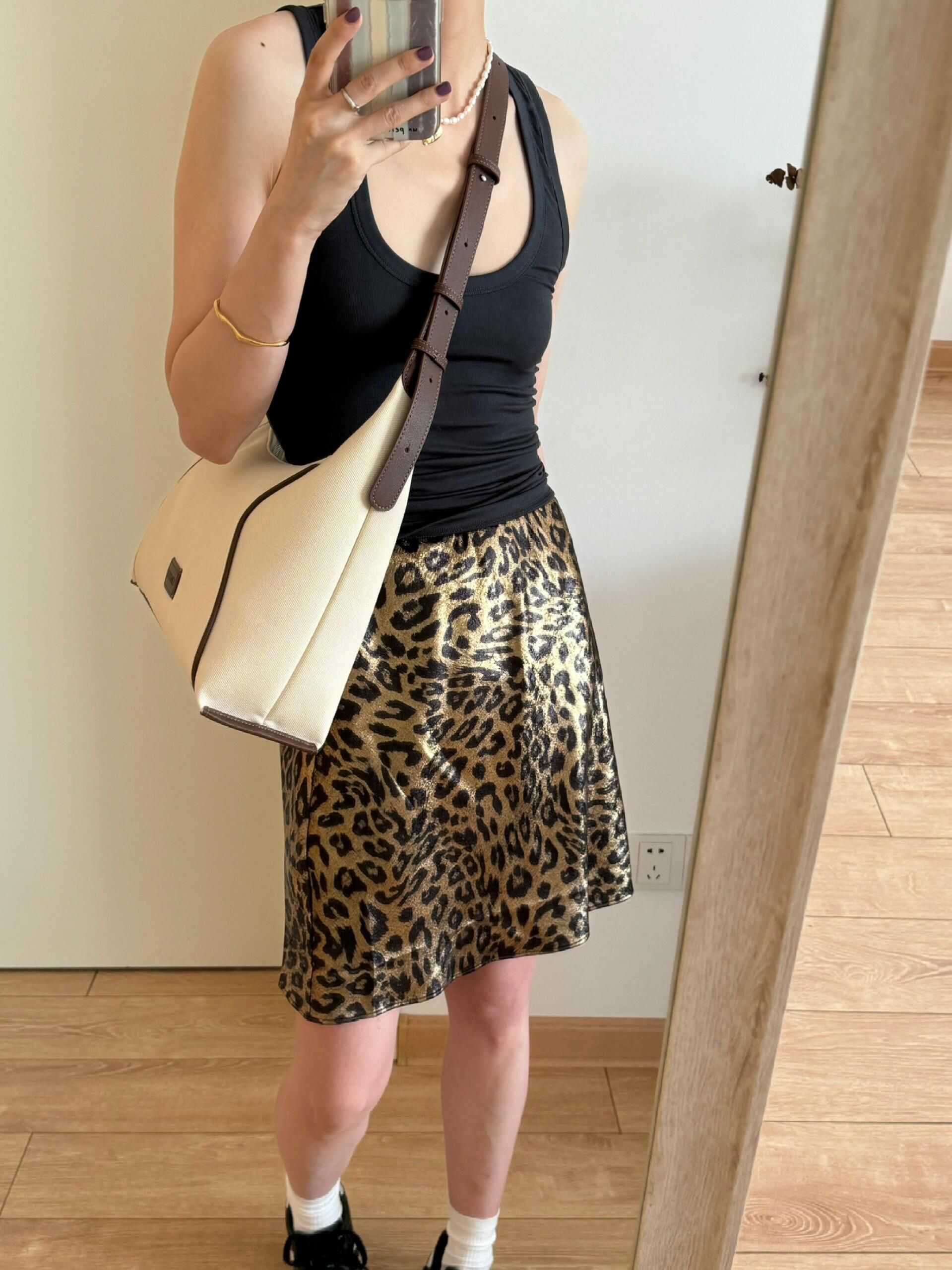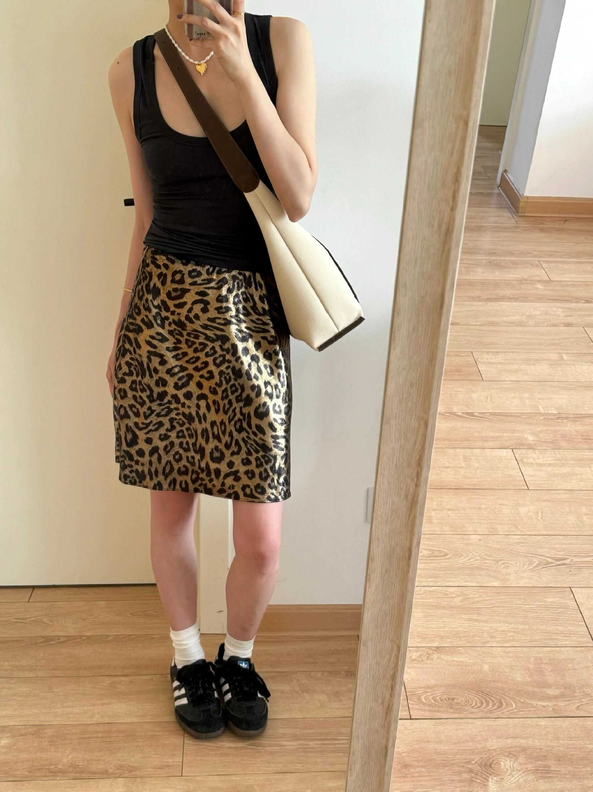 ECHOADE经典隽永抗皱烫金气质豹纹a字半身短裙女夏垂坠感半身裙 - Dakiyo La Mode