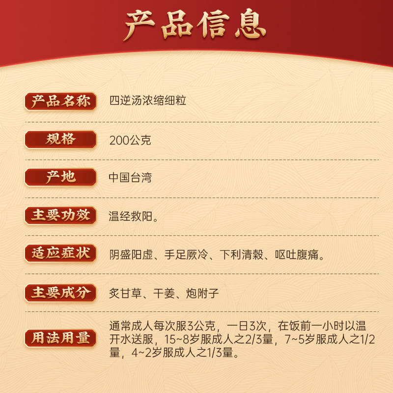 【福利】中国台湾仙丰四逆汤中成药温经救阳阴盛阳虚手足厥冷呕吐