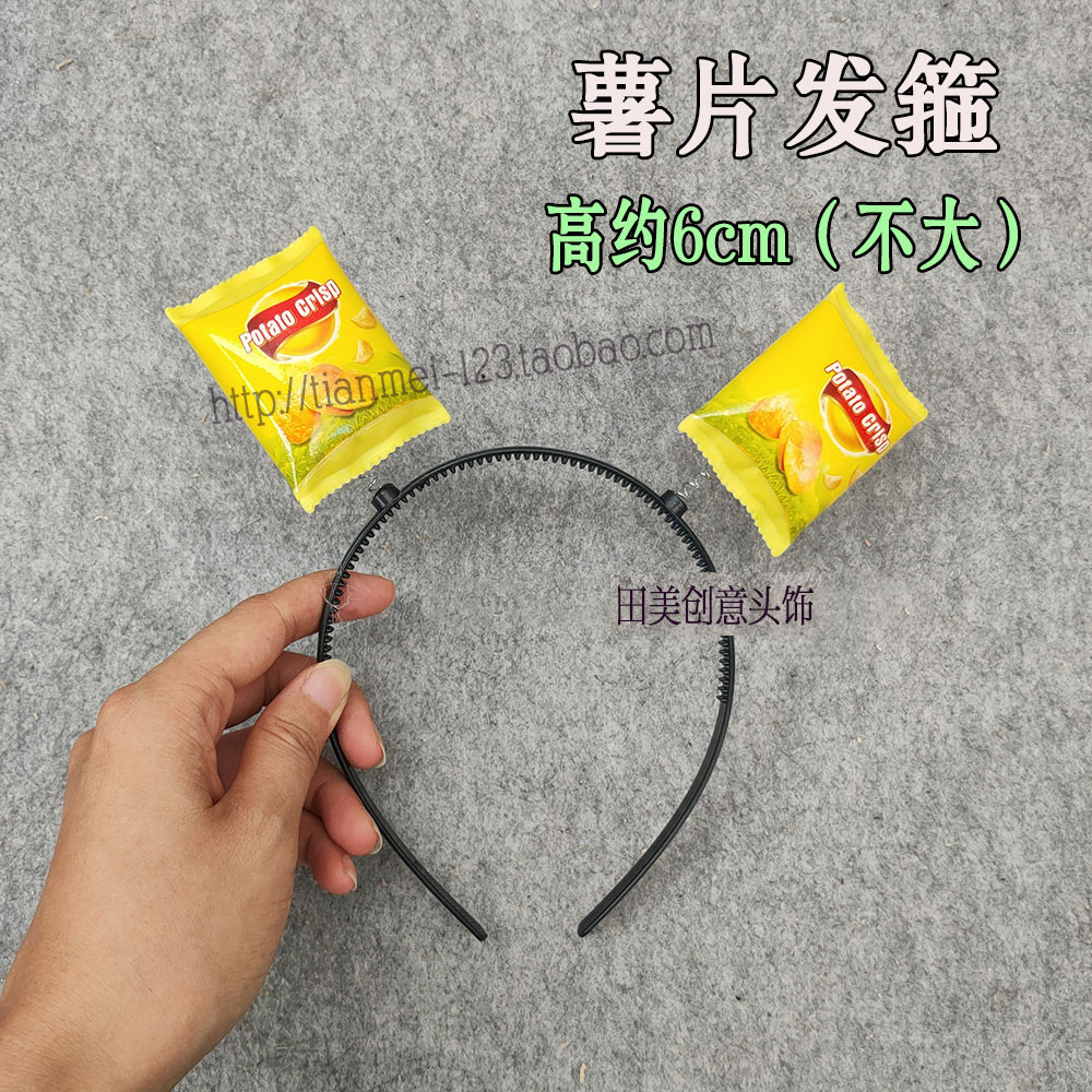网红搞笑饭团奶茶可乐甜筒咖啡薯片食物直播间搞怪发箍头箍发夹子 - 田美创意头饰
