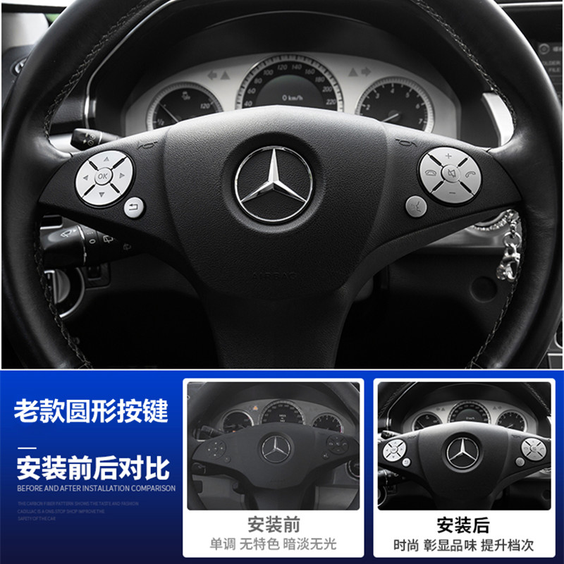 适用于奔驰老款A B C E R S级CLS ML GL GLK内饰改装方向盘按键贴 - 星旺车品