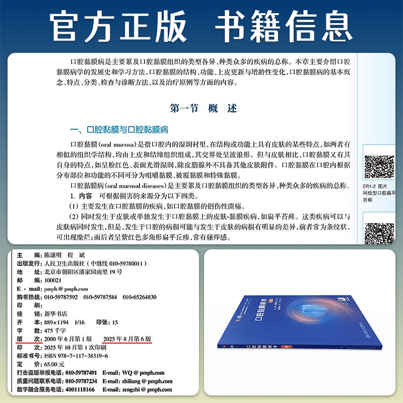 新版口腔黏膜病学第6版六版陈谦明程斌本科口腔医学专业十四五规划教材配增值大学教材牙周病学口腔修复组织病理学人民卫生出版社 - 人卫图书专营店
