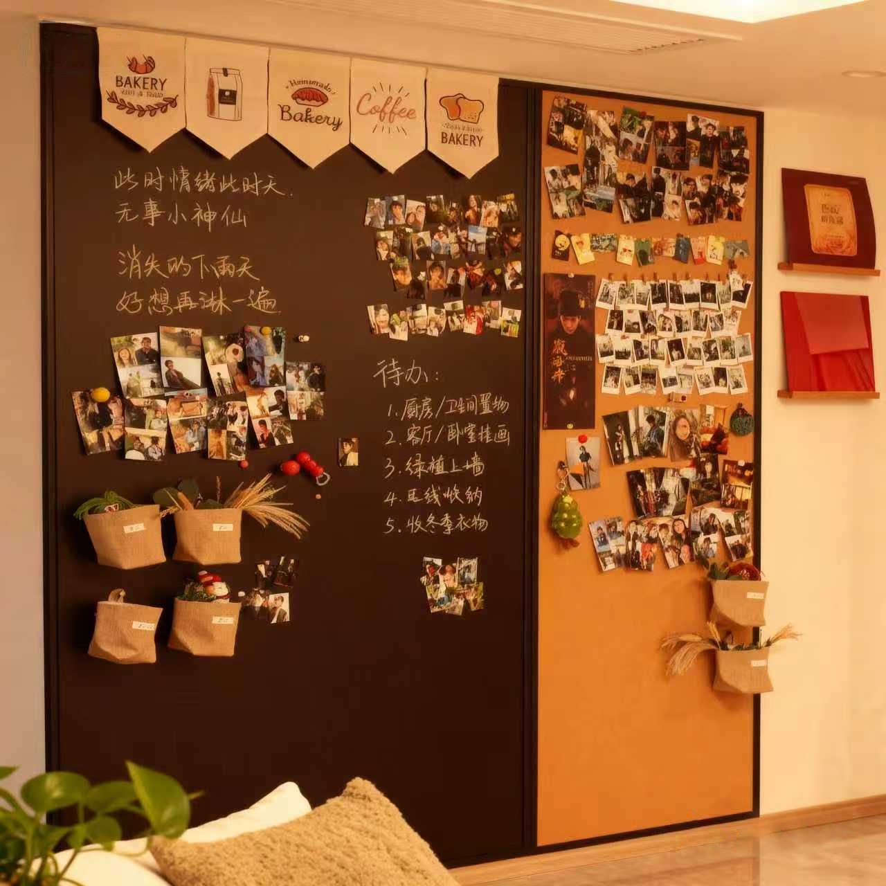 齐富黑板家用教学定制实木框软木板照片墙白板家用教学可擦写学习计划液体粉笔无尘磁吸墙面奖状装饰展示板 - 齐富旗舰店