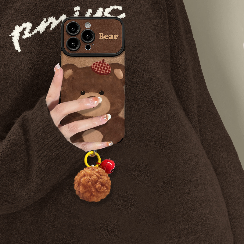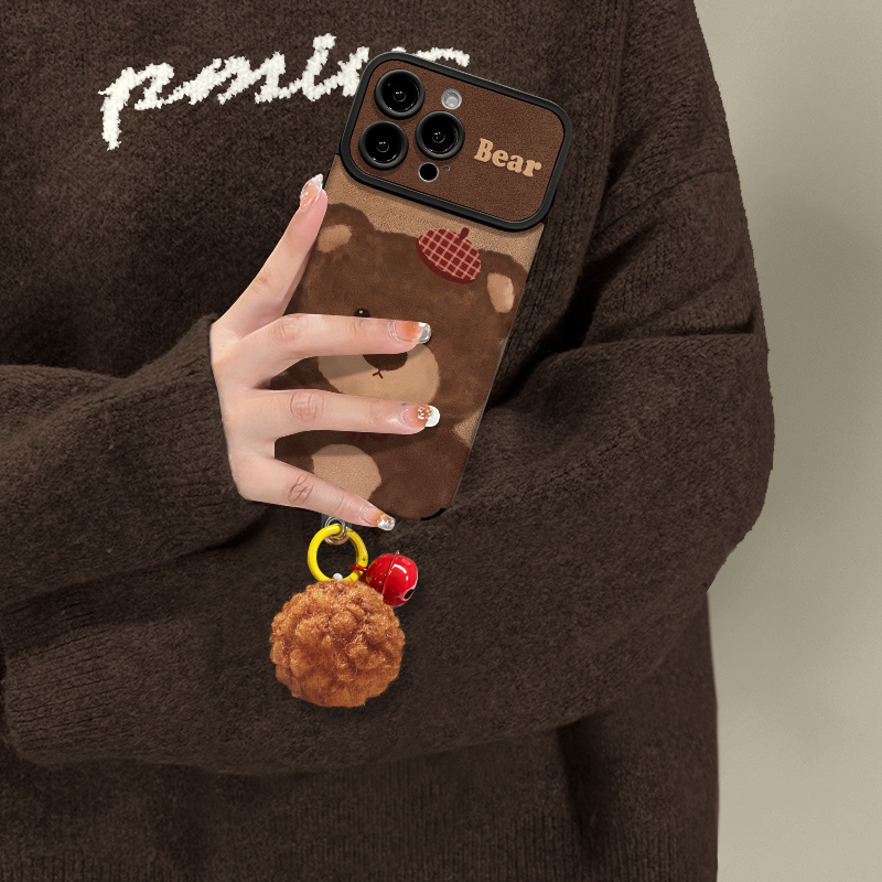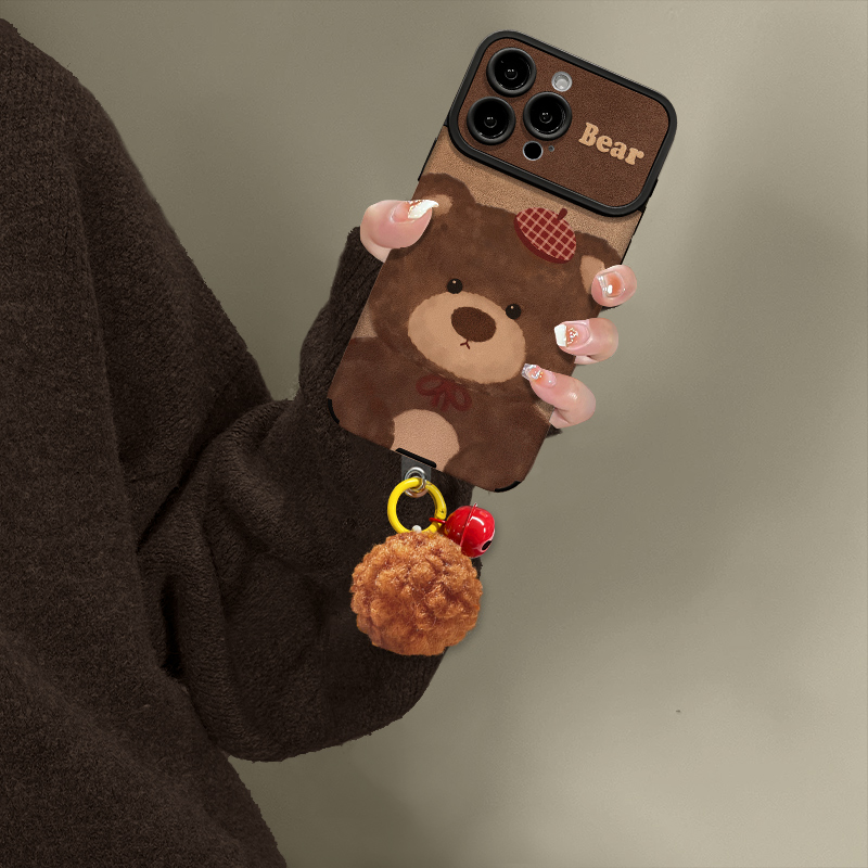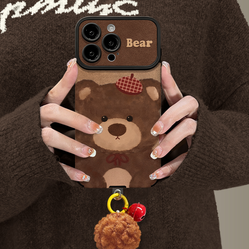 皮质可爱小熊挂坠适用苹果17promax手机壳iPhone16/15华为mate70新款pura80软小米17秋冬vivos30女reno14防摔 - 智隶数码配件专营店