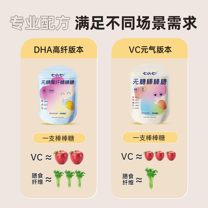 七小七无糖棒棒糖高纤高VC悦齿系列膳食纤维儿童优质糖果天然果味 - 小高也有梦想