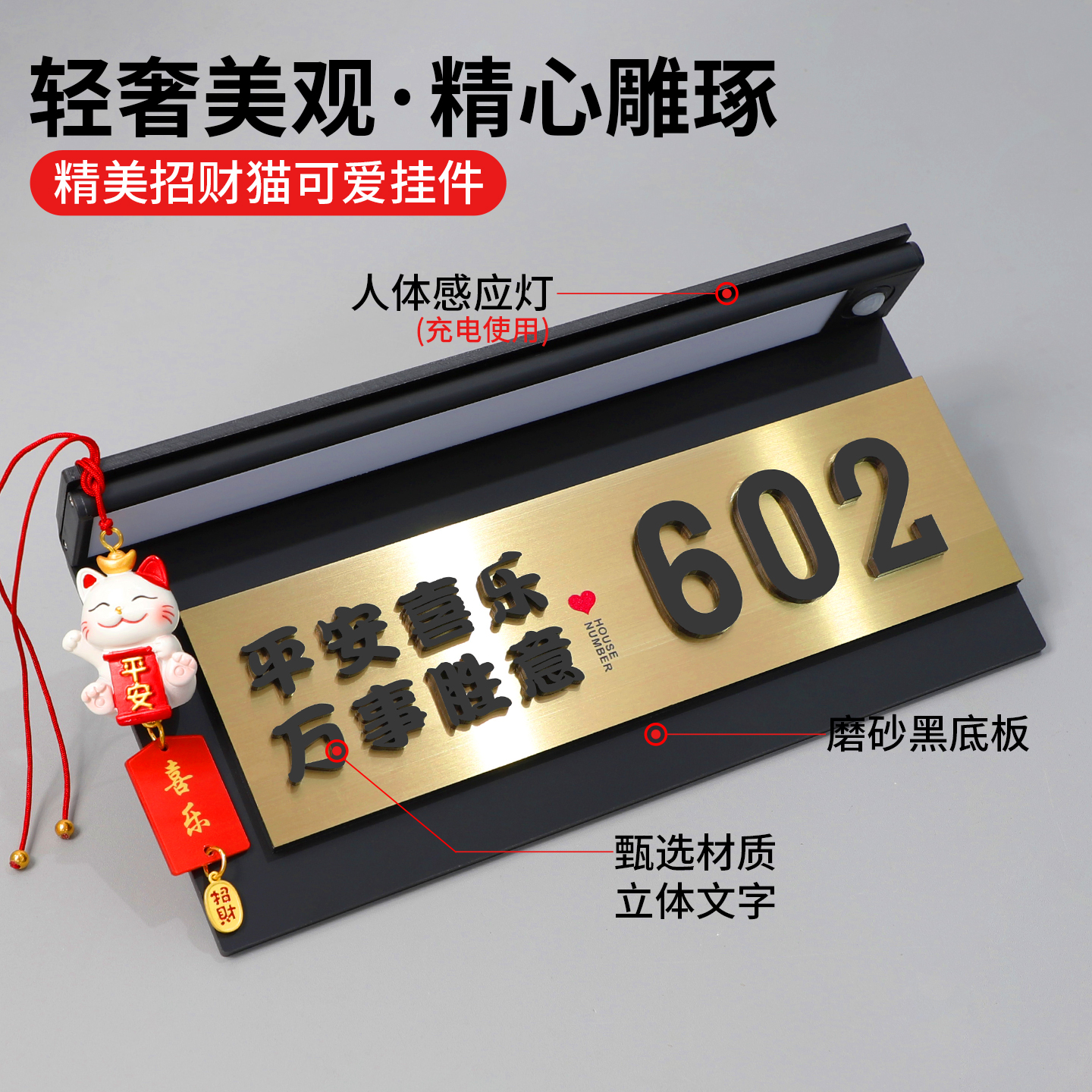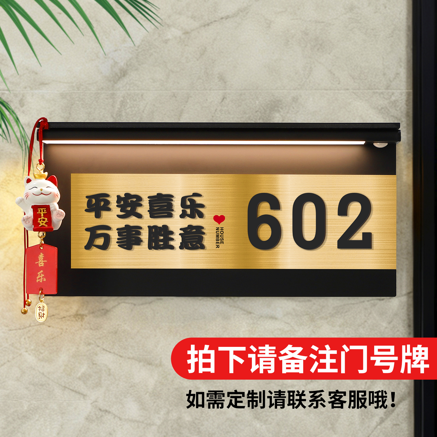 门牌号码牌家用高级感入户门房间号新家温馨装饰定制轻奢创意智能门号门口提示发光挂牌个性化中古风房号挂件 - 致彩优旗舰店