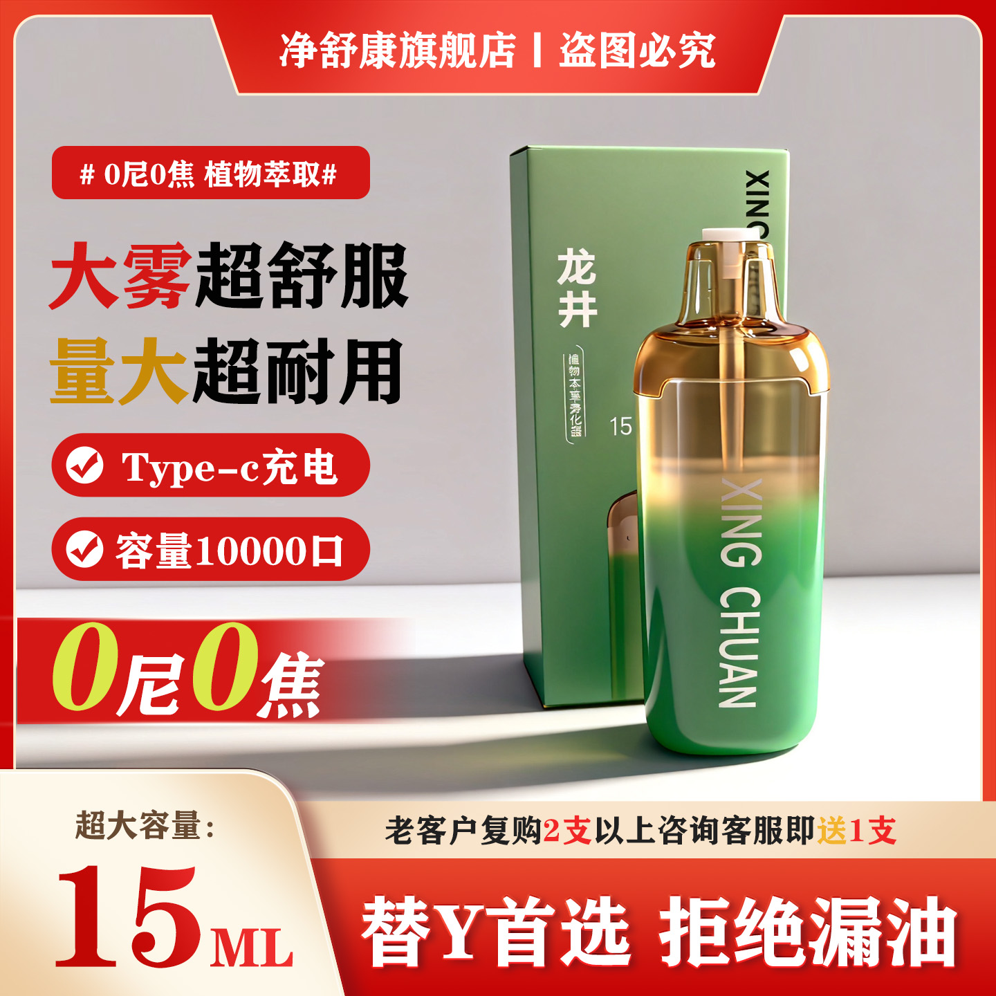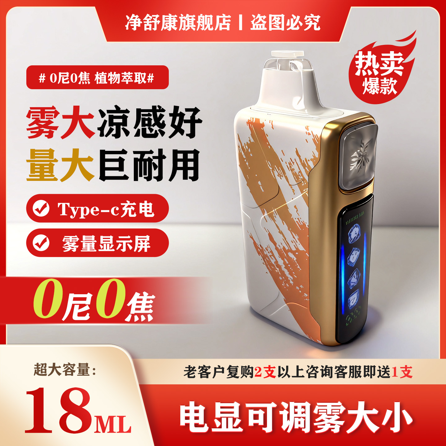 电子雾化器口腔喷雾器大板砖大雾量可充电戒烟果味雾化吐雾吸吐棒 - 净舒康旗舰店