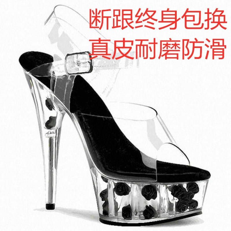 您的位置:他他商城  >   >  高跟鞋15cm细跟防水台透明水晶玫瑰花性感夜店钢管舞sm女模特凉鞋