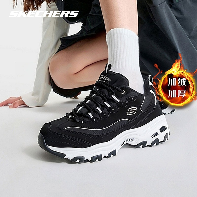 斯凯奇加绒女鞋熊猫鞋2025冬季新款运动鞋子正品保暖老爹鞋休闲鞋