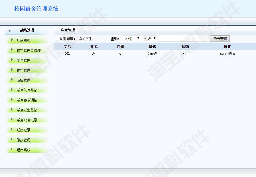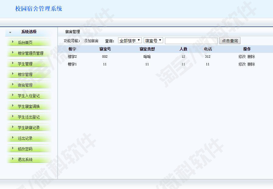 校园宿舍后台管理系统jsp学生公寓寝室宿舍楼信息java源代码mysql - 微科软件