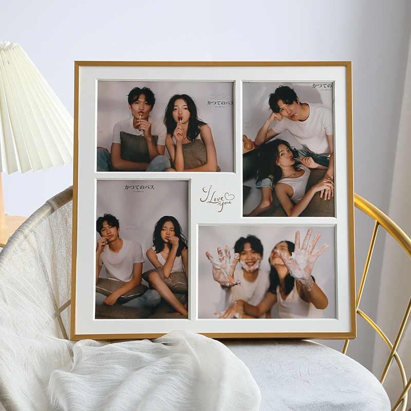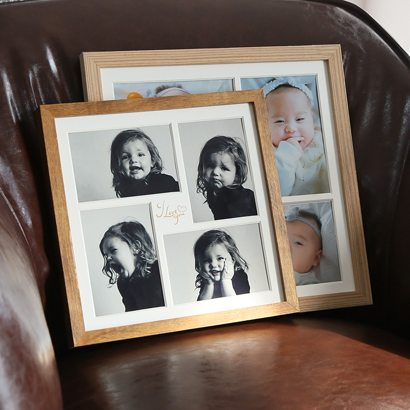 加卡纸孔四宫格摆台相片方形画框实木铝合金洗照片做成相框 - 底之蛙井商城