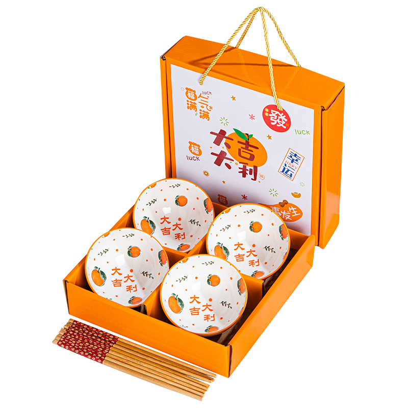 您的位置:他他商城  >   >  大吉大利碗青花瓷碗套装陶瓷碗套碗家用餐具碗筷套装礼品礼盒装
