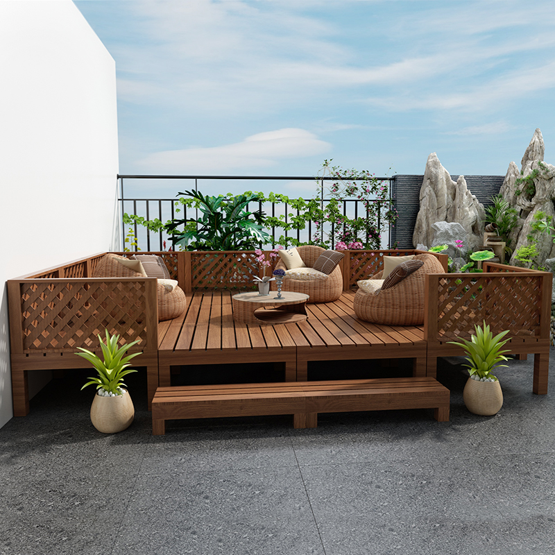 户外露台实木榻榻米别墅阳台花园装饰平台室外庭院防腐木地台地板