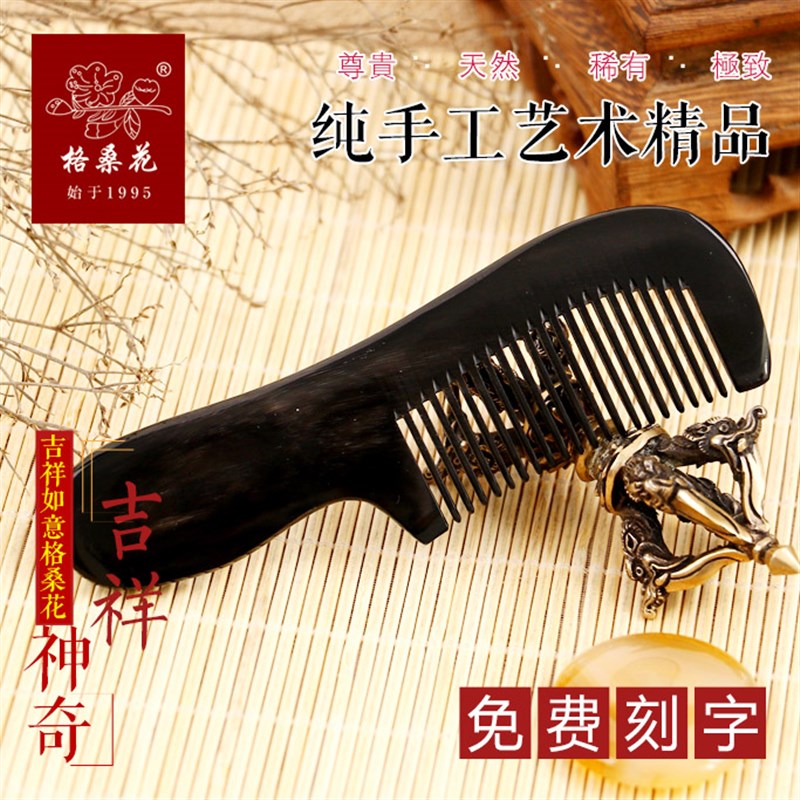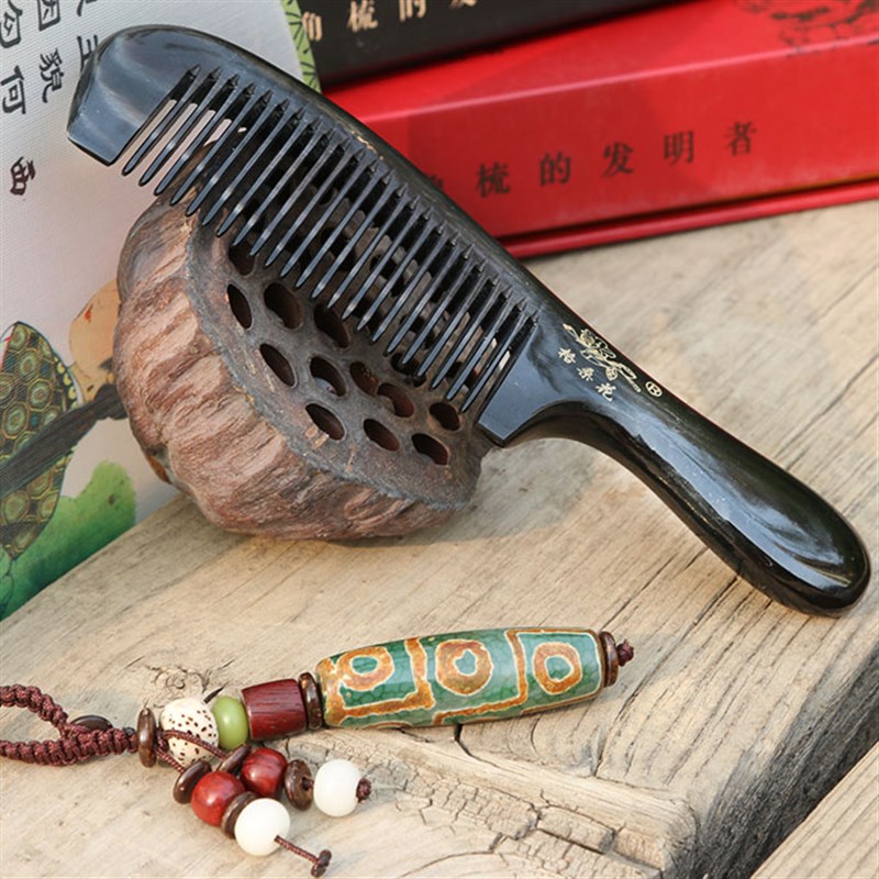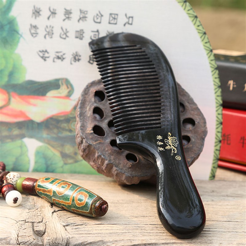 茂县格桑花黑牦牛角梳 圆把梳 14CM 不伤头皮 多功能保健梳子 - 长宏工厂直销