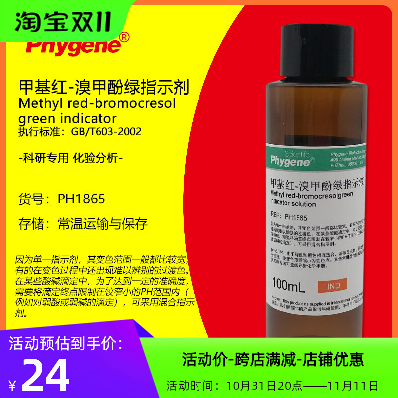 您的位置:他他商城  >   >  溴甲酚绿-甲基红混合指示剂100ml/500ml酸碱混合指示液标准溶液