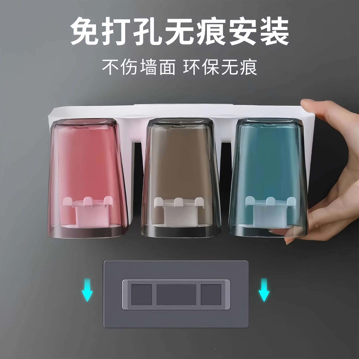 牙刷置物架免打孔漱口杯刷牙杯卫生间壁挂式家庭电动牙膏牙刷架子 - 永顺日用百货超市