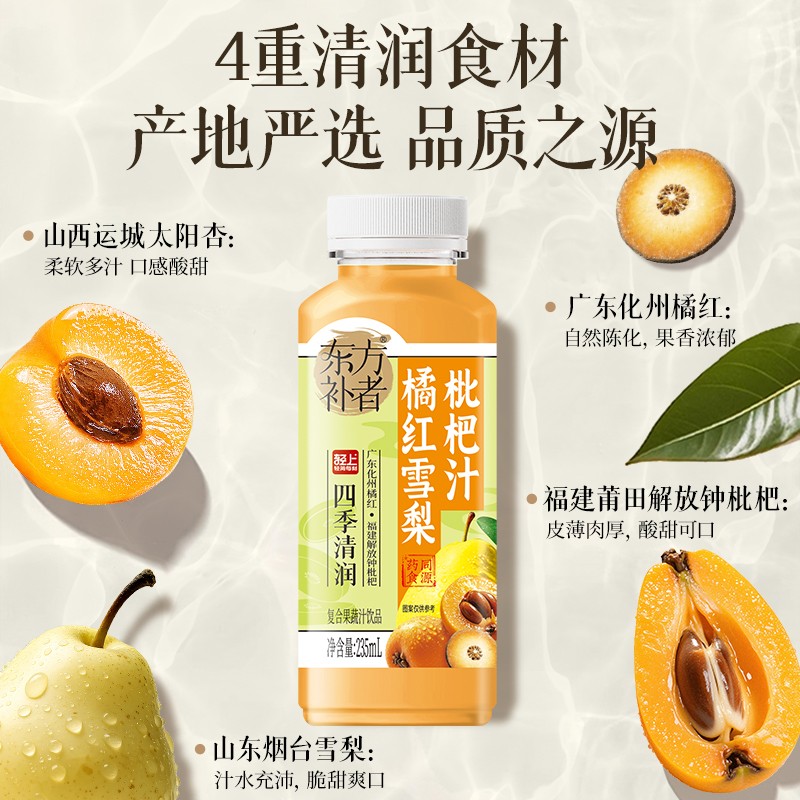 您的位置:他他商城  >   >  东方补者橘红雪梨枇杷汁果蔬汁饮品秋冬滋补营养解腻送礼好喝饮料
