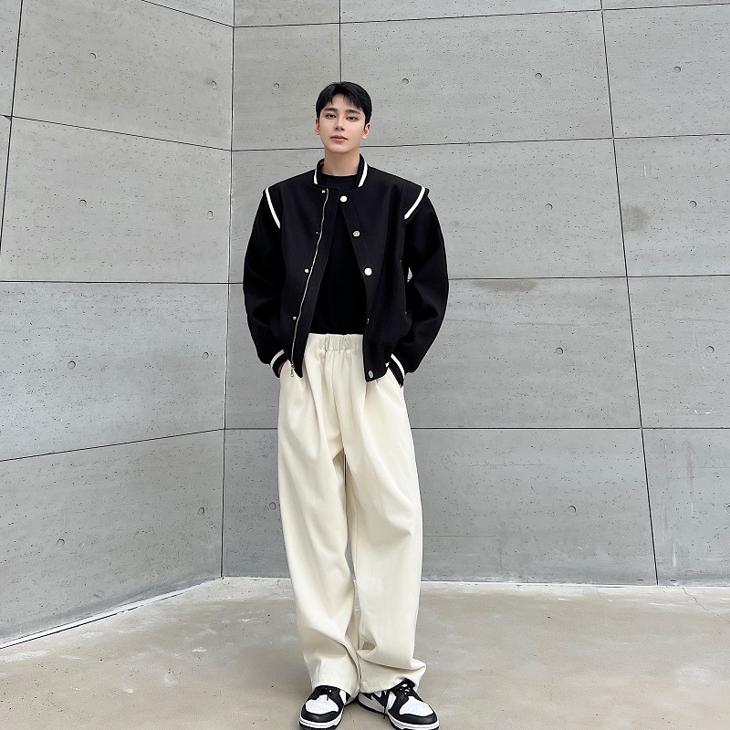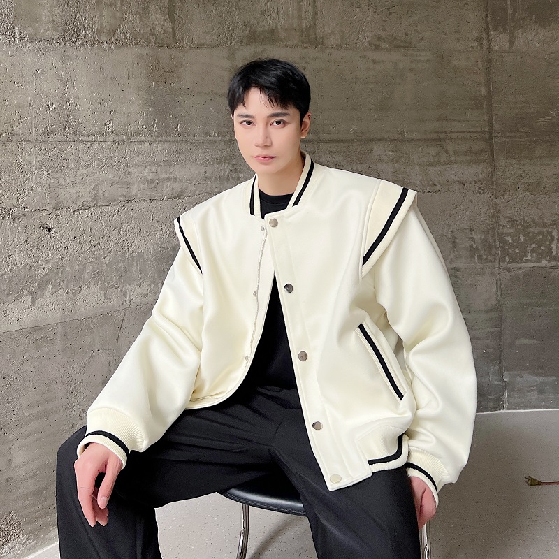春秋加厚毛呢棒球领短款夹克外套男韩版休闲设计感上衣拼接层次潮 - 我爱文艺美型男