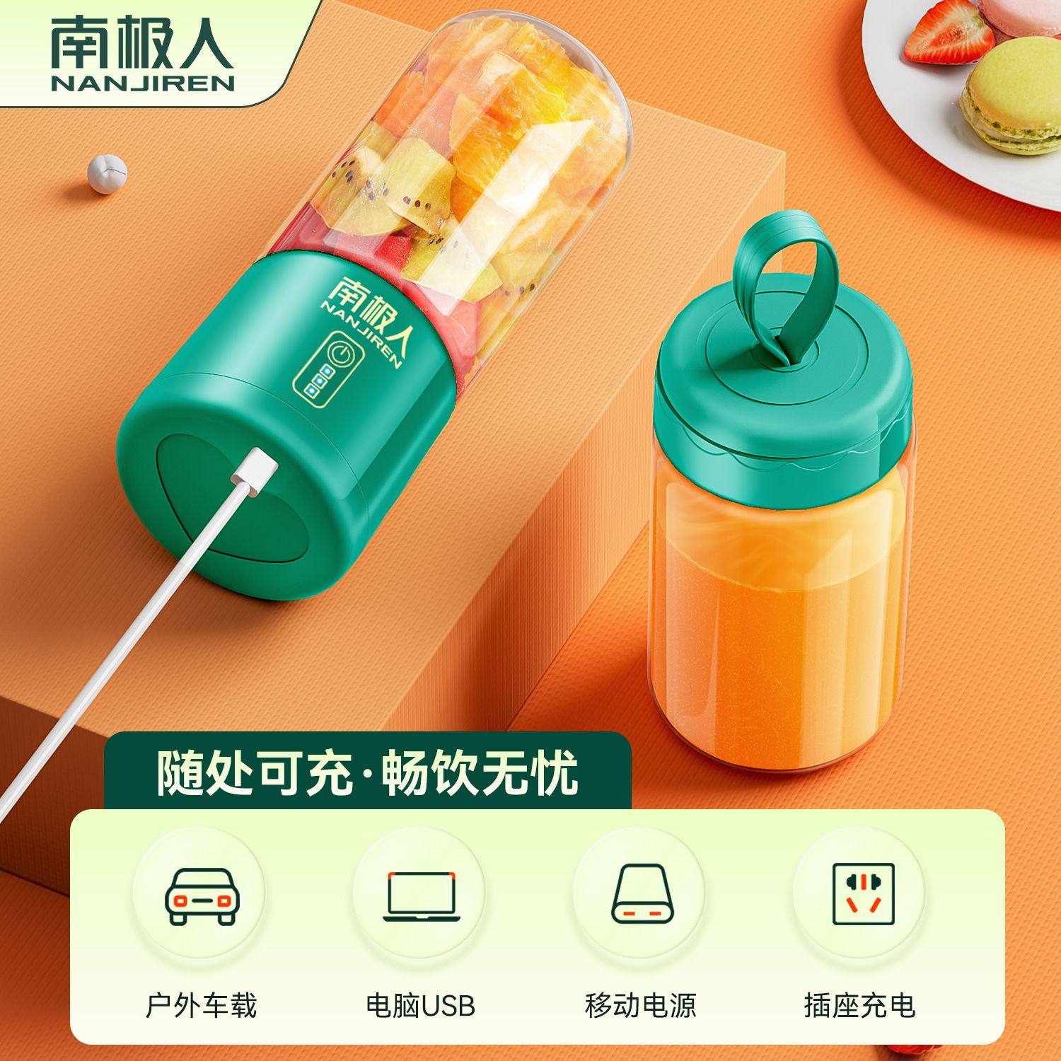南极人榨汁机家用小型便携式果蔬汁炸果汁机迷你玻璃杯手摇榨汁杯