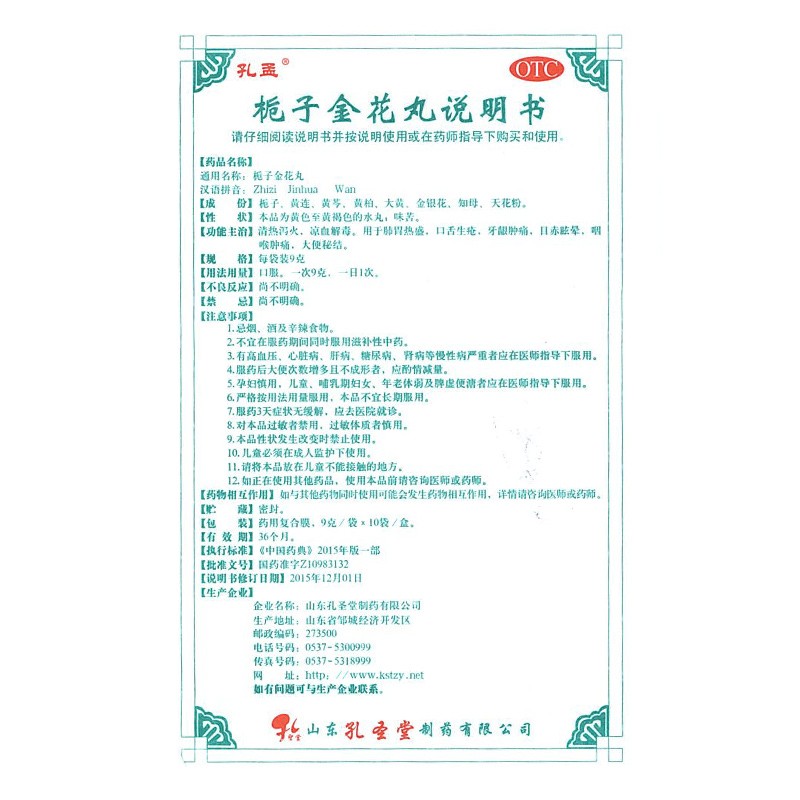 孔孟 栀子金花丸 9g*10袋/盒 清热泻火凉血解毒肺胃热盛口舌生疮 - 都会好大药房旗舰店