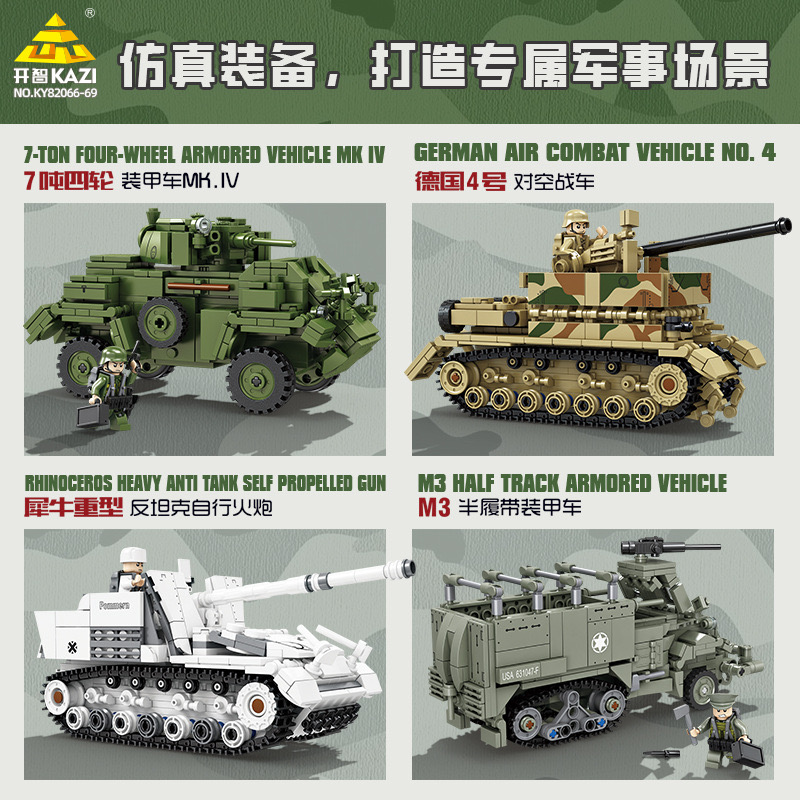 开智军事坦克系列半履带装甲车犀牛重型反自行火炮拼装积木玩具男