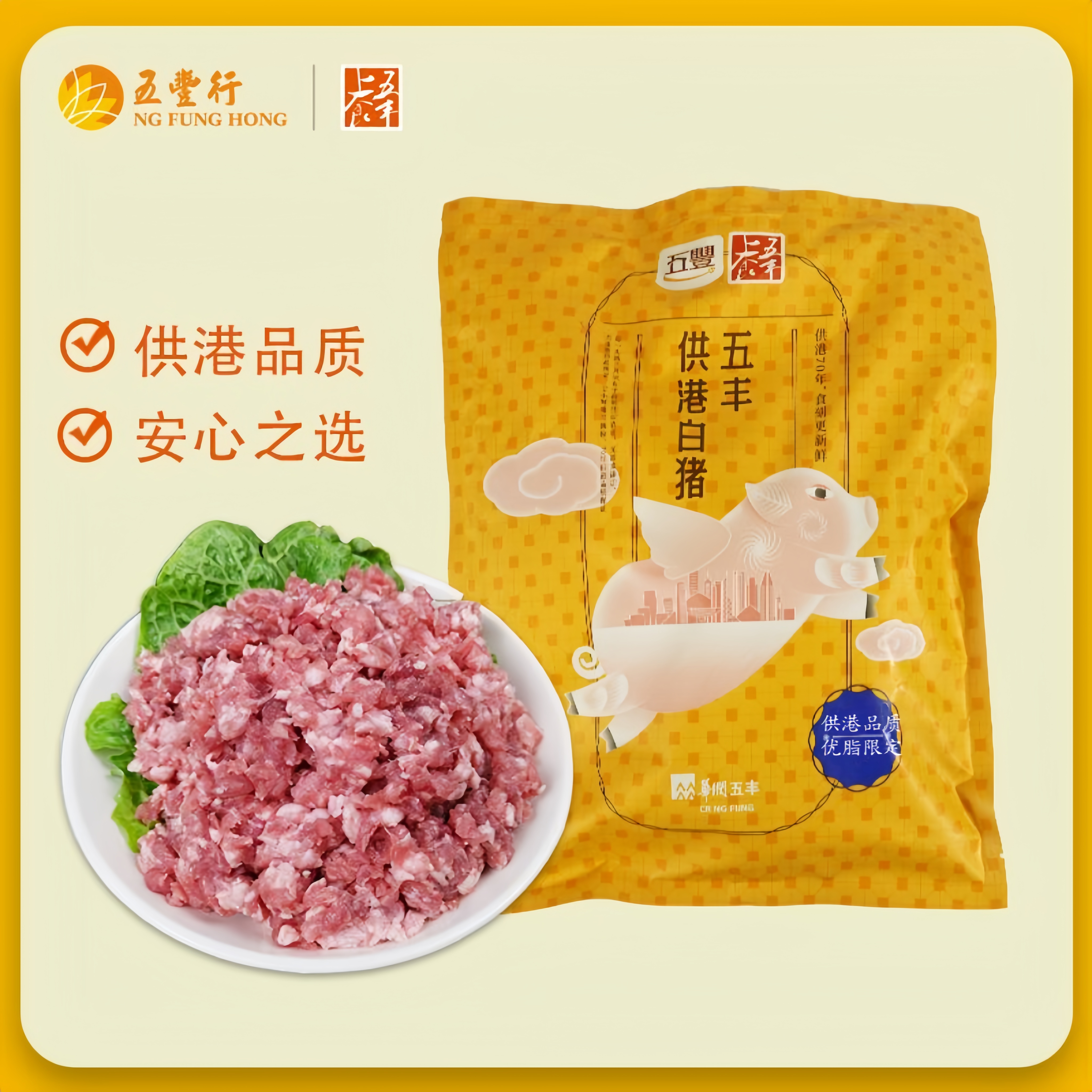 五丰上食供港夹心肉糜鲜冻新鲜白猪肉沫纯肉米前腿肉馅无注水