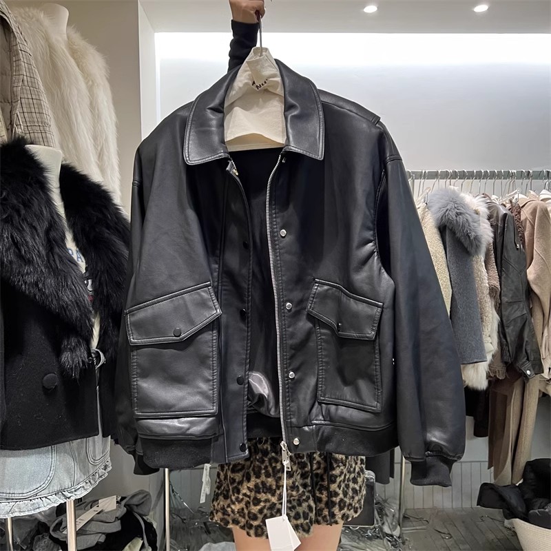 PLNH2025冬季新款韩版时尚设计感宽松显瘦蛋白皮皮衣百搭外套女