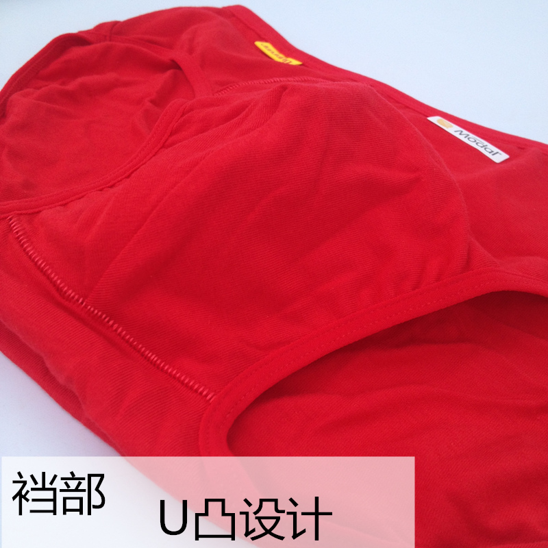 健将9528莫代尔男士内裤本命年结婚大红色三角9522纯棉底裤 2条装 - 不二火把内衣内裤批发店