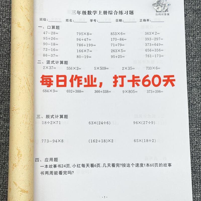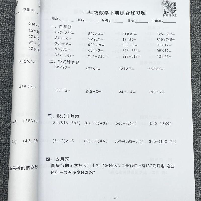 三年级上下册口算竖式脱式解方程小数加减乘除混合练习本课业本子 - 征程资料大全1