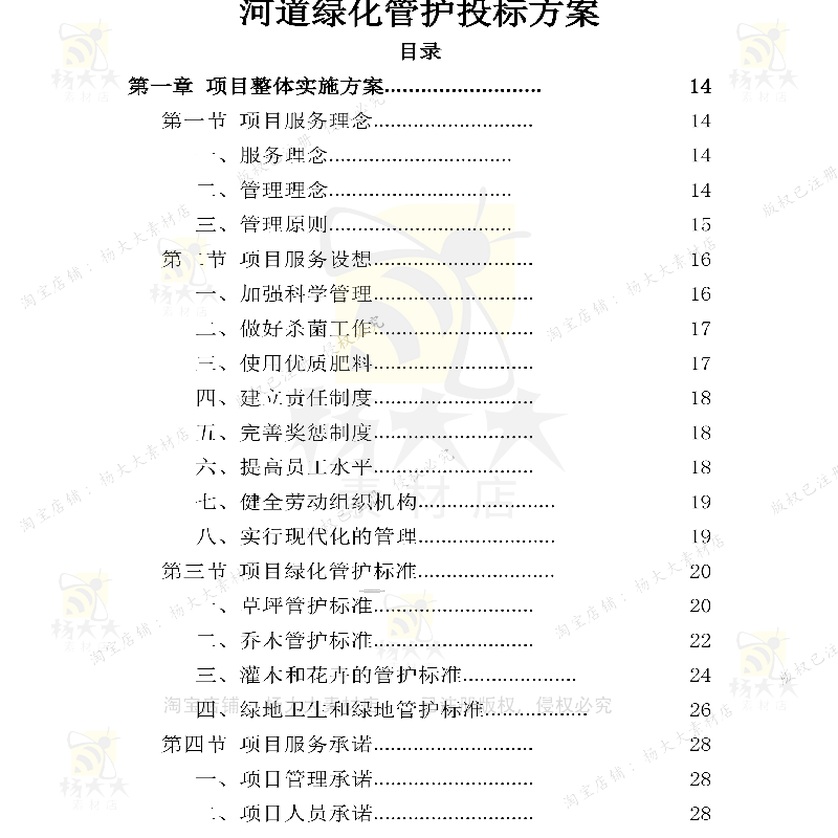河道绿化管护投标方案 立体绿化管护服务投可编辑文档方案word标 - 杨大大素材店