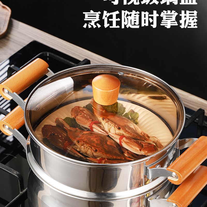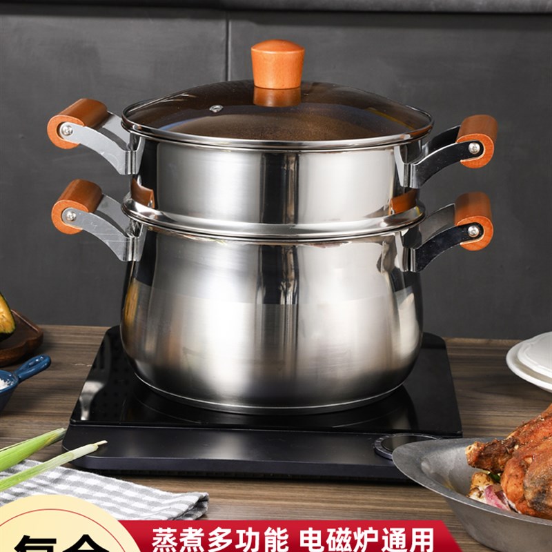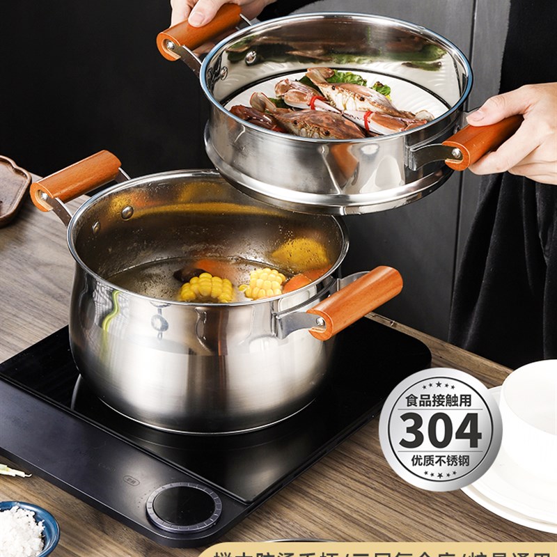 304不锈钢食品级家用小蒸锅复底汤锅煮汤蒸包带蒸笼电磁炉多功能
