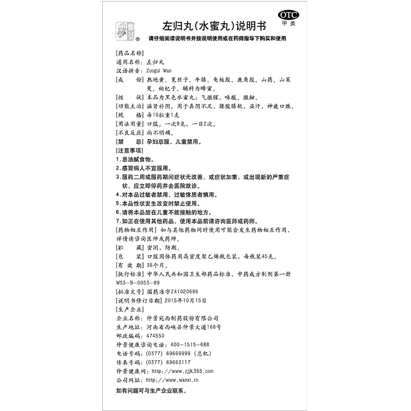 仲景左归丸45g/盒正品补肾精亏肾阴虚男早泄中药调理养肾药女士虚 - 八首川大药房旗舰店