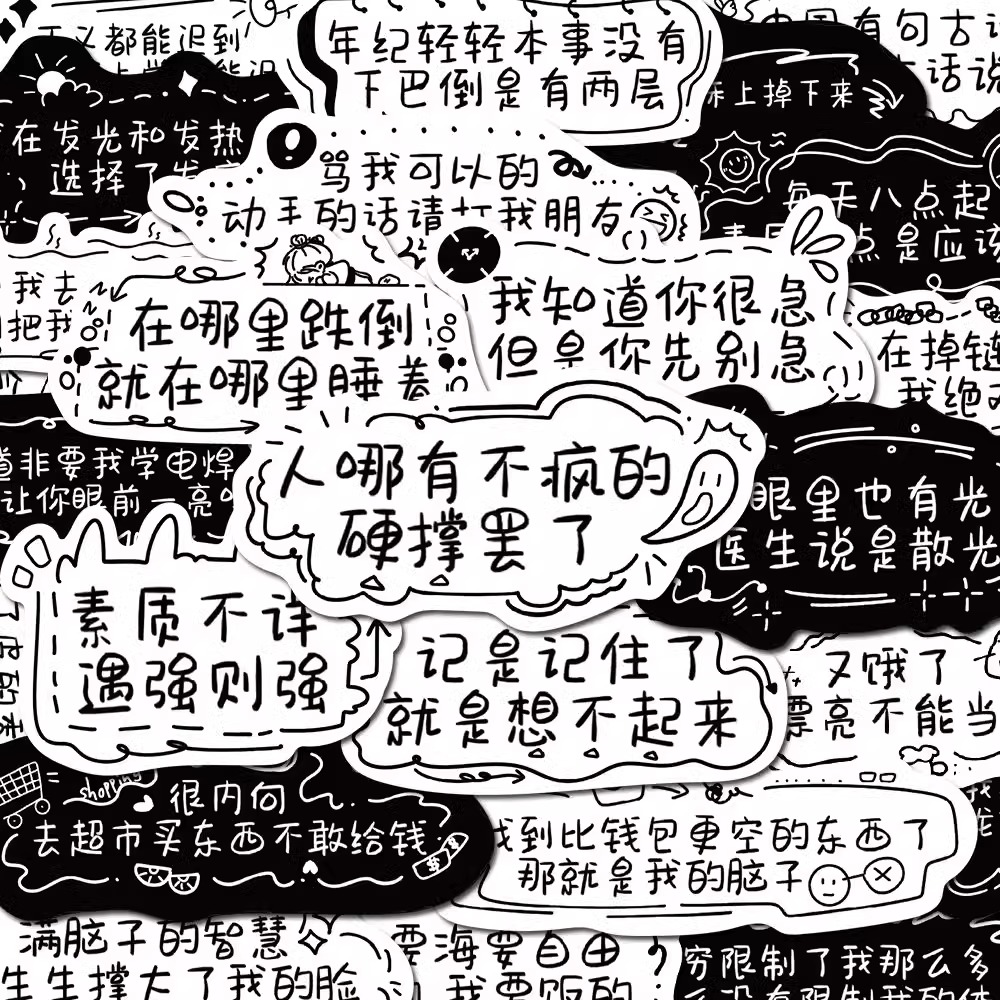 您的位置:他他商城  >   >  66张 发疯文学语录贴纸当代精神状态搞笑创意沙雕装饰防水diy贴画