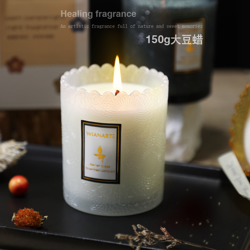 法式香薰蜡烛礼盒高级感浮雕精油香氛无烟低温蜡烛大豆蜡香熏品质 - 三度空间精品摆件工厂直销
