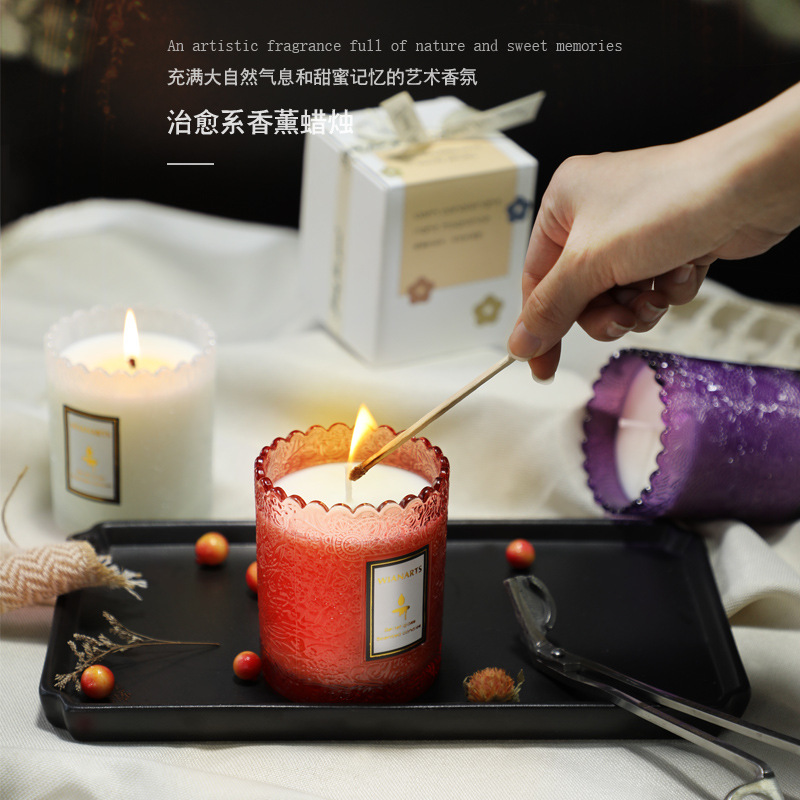 法式香薰蜡烛礼盒高级感浮雕精油香氛无烟低温蜡烛大豆蜡香熏品质