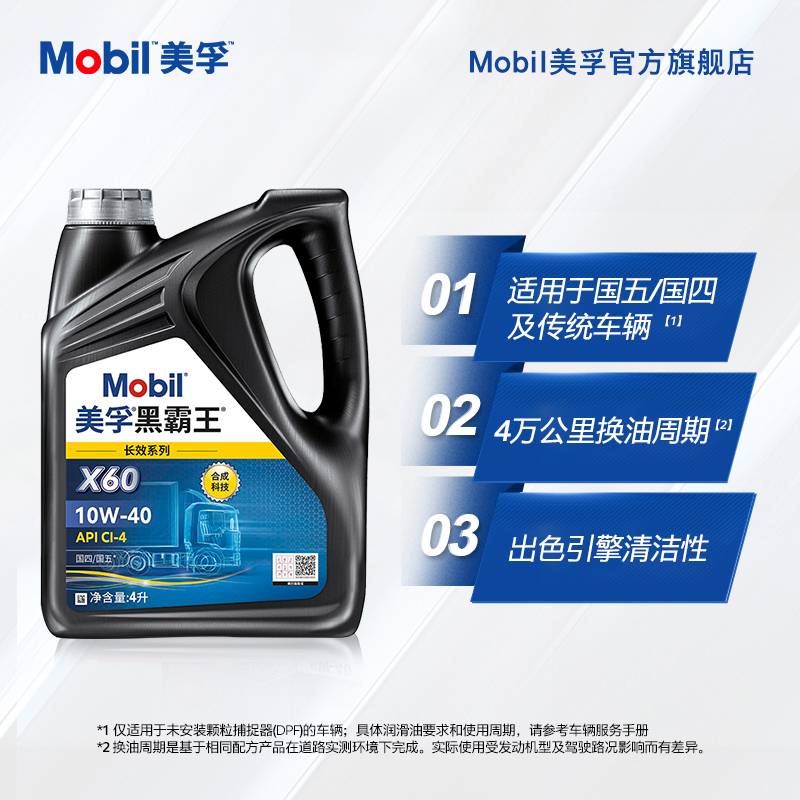 官方正品Mobil美孚黑霸王长效X60 10W-40 CI-4 4L柴机油发动机 - Mobil美孚官方旗舰店