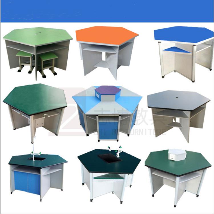 学生实验室六边桌学校实验桌铝木多人位学校理化生六边综合实践桌 - 晓光