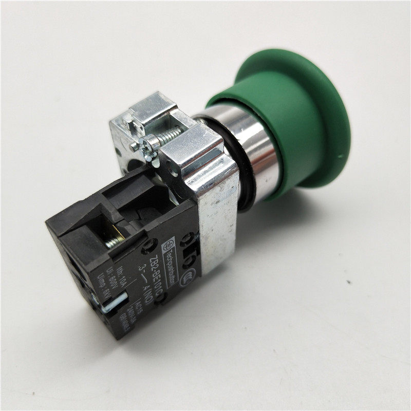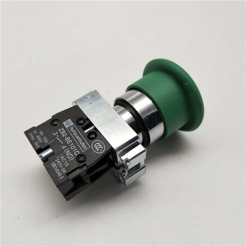 22MM孔径XB2-BC31蘑菇头自动复位按钮开关ZB2-BE101C常开绿色