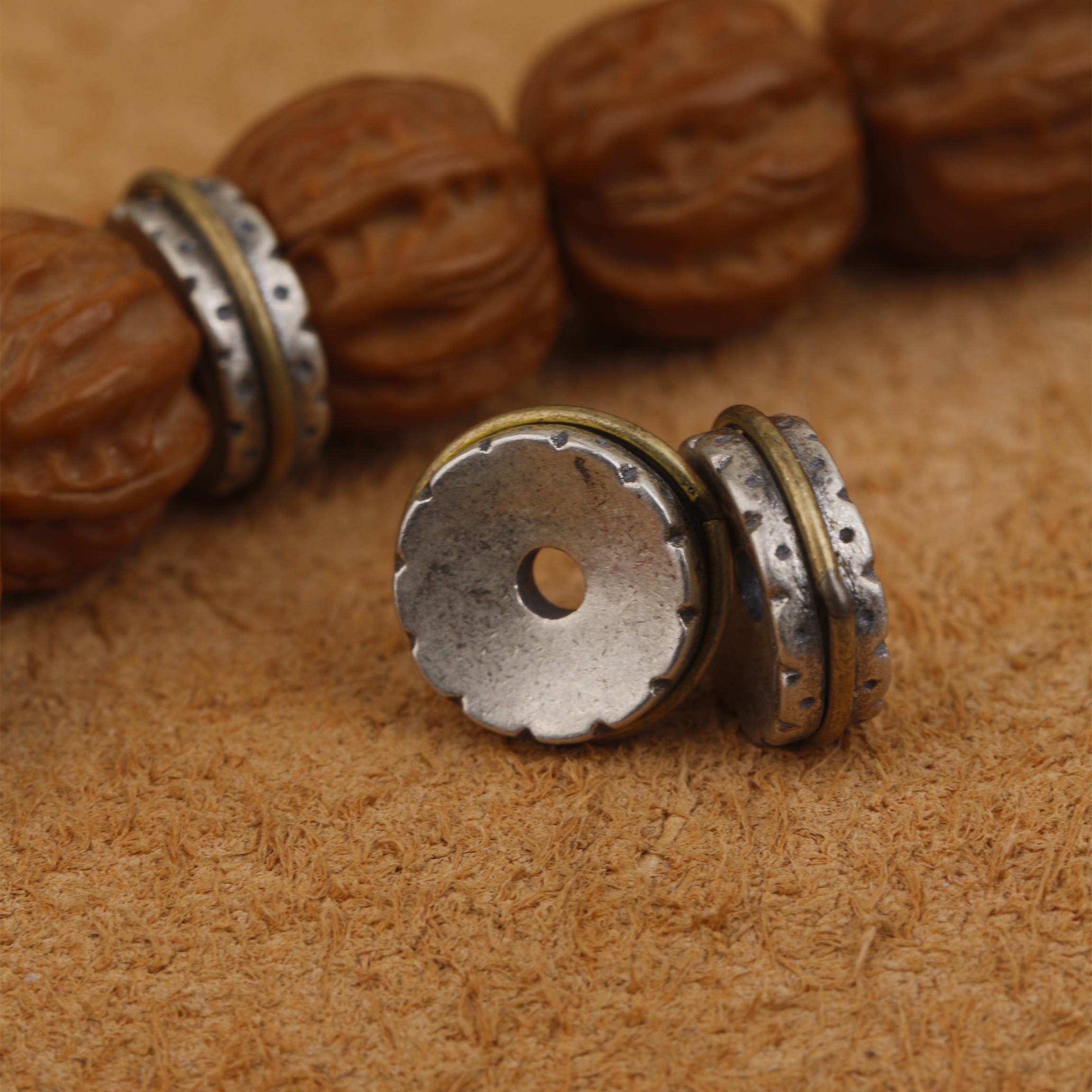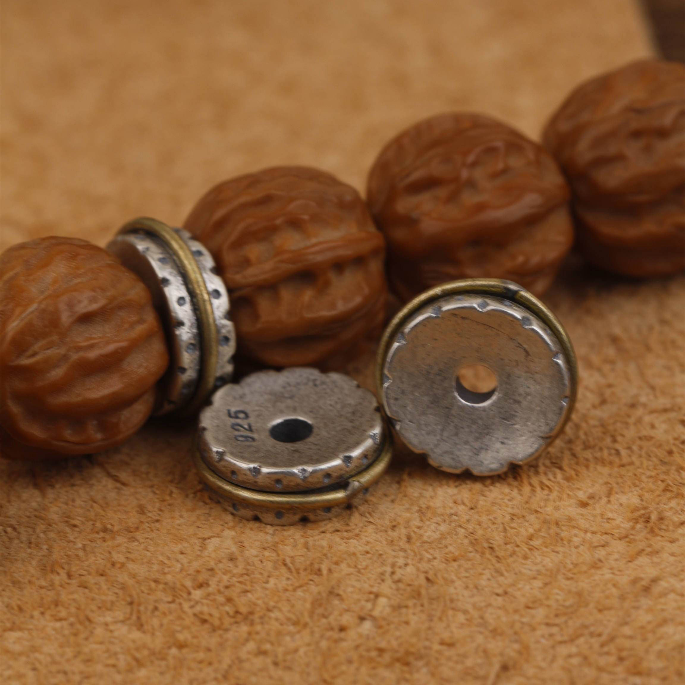 s925纯银隔片文玩手串配饰108金色铜垫片百香籽猴头星月菩提 - 朴素文玩