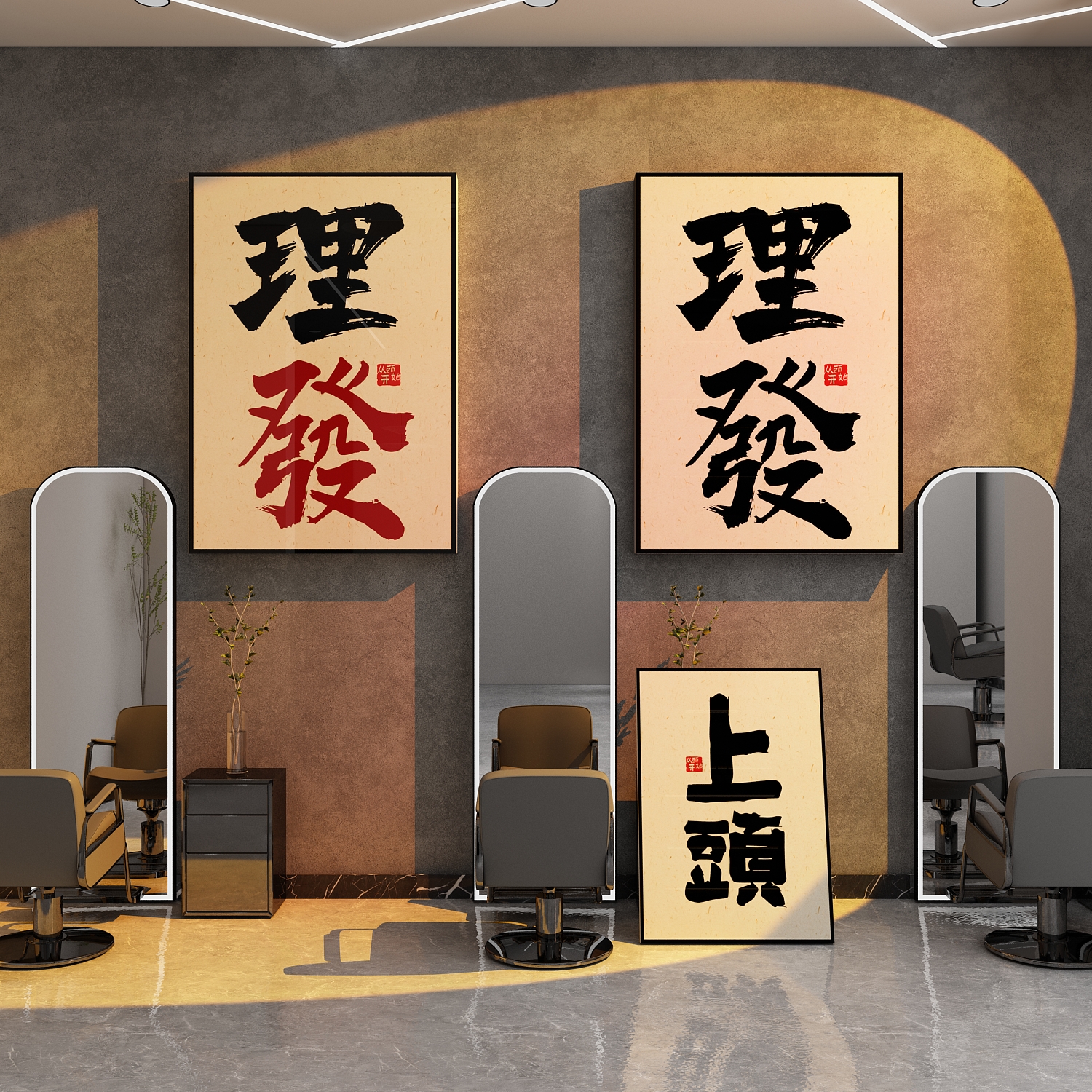 网红理发店墙面装饰品美发廊吧台背景形象高级感海报墙贴挂画摆件 - 80饰家