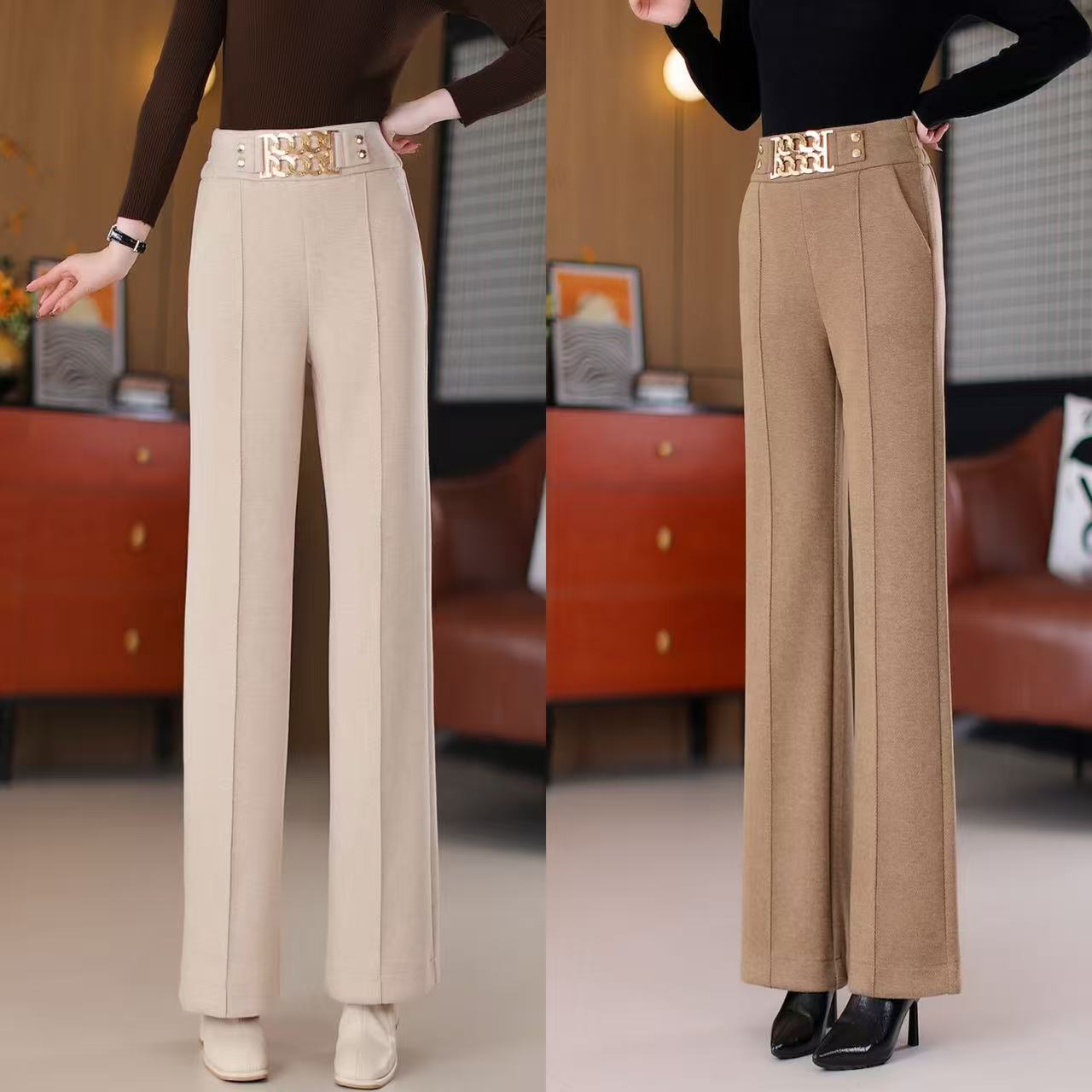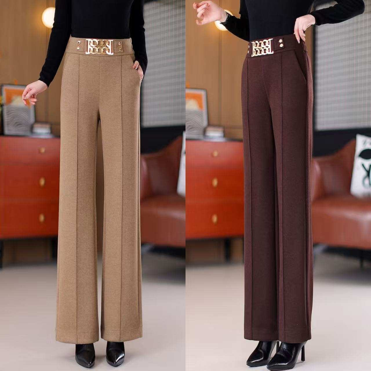 轻奢气质阔腿裤2025秋冬新款垂感桑蚕丝羊毛气质显瘦高腰直筒长裤 - 伊多蔓精品女装商行