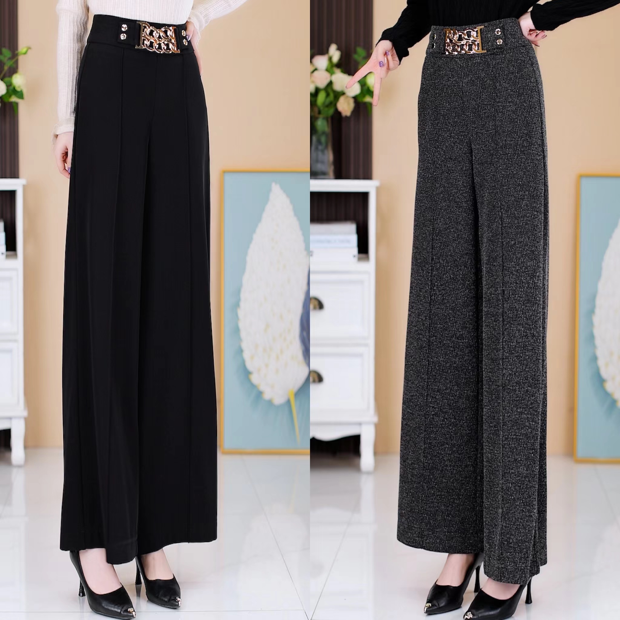 您的位置:他他商城  >   >  轻奢气质阔腿裤2025秋冬新款垂感桑蚕丝羊毛气质显瘦高腰直筒长裤